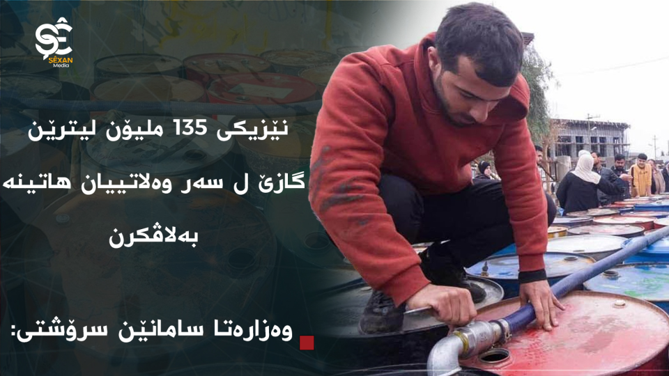 وەزارەتا سامانێن سرۆشتی ل حكومەتا هەرێما كوردستانێ ڕاگەهاند، هەتا 4/1/2026ێ نێزیكی 135 ملیۆن لیترێن گازێ ل سەر نێزیكی 674,500 خێزانان ل دەڤەرێن چیایی و دەوروبەران، پارێزگەهـ و ئیدارەیێن سەربەخۆ یێن هەرێمێ هاتینە بەلاڤكرن.